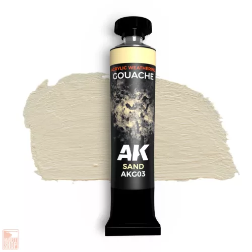 AK gouache paints are a combination of opaque pigments mixed with a water-based binder. They create vibrant, saturated colors that are great for making matt opaque layers. AK gouache paints can be applied over conventional acrylics, enamels, and oil paints along with plastic, paper, cardboard, and other types of media. These properties make AK gouache paints perfect for the application of matt rust, earth, and other weathering tones.