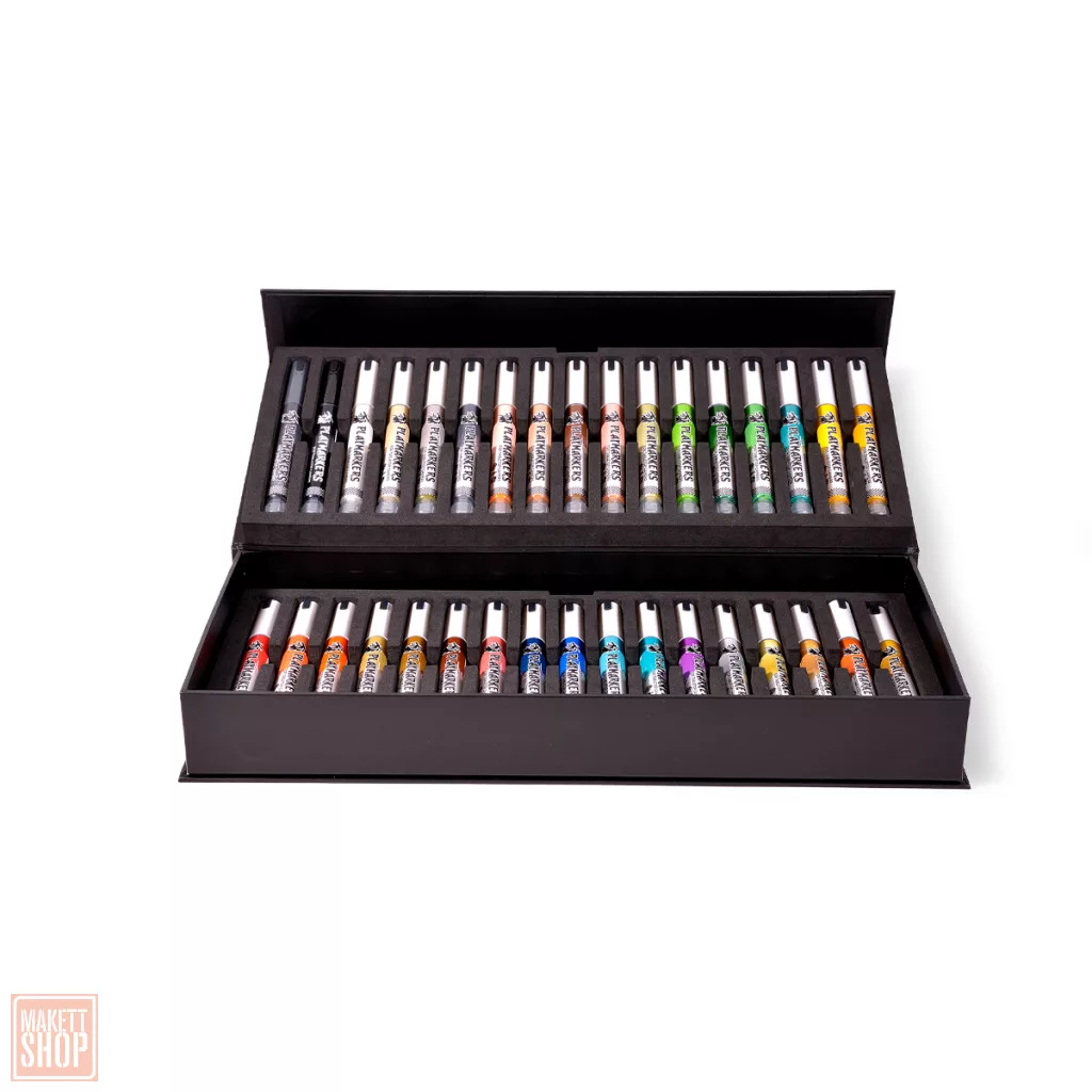 (The finish of the markers is matte, but some references, due to the nature of the pigments, can be somewhat satin. Regardless of the preferred finish, whether it is matte, satin or glossy, the markers can be coated with any type of varnish without fear of damaging the paint).