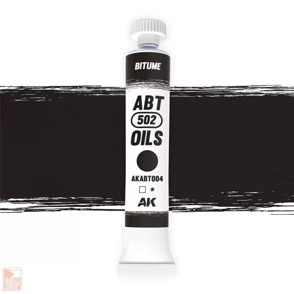 ABT502 oil paints not only contain a range of exclusive colors for modelers, but also have a exclusive formula with less oil for more matte finishes and a perfect balance between the medium and the highest quality pigments. Oil paints are very special paints with different and unique characteristics that allow a great control of the techniques, providing completely realistic finishes.Smoke color is useful for increasing the chromatic richness on wheels, engines and of course on burnt out vehicles. Smoke oil can be used to create dark washes and filters for exhaust stains on aircraft. ABT502 oil paints not only contain a range of exclusive colors for modelers, but also have a exclusive formula with less oil for more matte finishes and a perfect balance between the medium and the highest quality pigments. Oil paints are very special paints with different and unique characteristics that allow a great control of the techniques, providing completely realistic finishes.