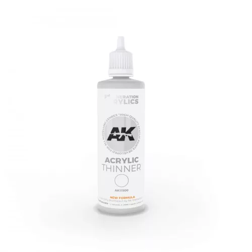 Volume: 100ml. High quality thinner for acrylic paints. Use it for maximum performance with the airbrush and prevent the paint jamming or clogging. You can use it with brush too. Use our Perfect Cleaner AK11505 to clean the airbrushes and brushes.