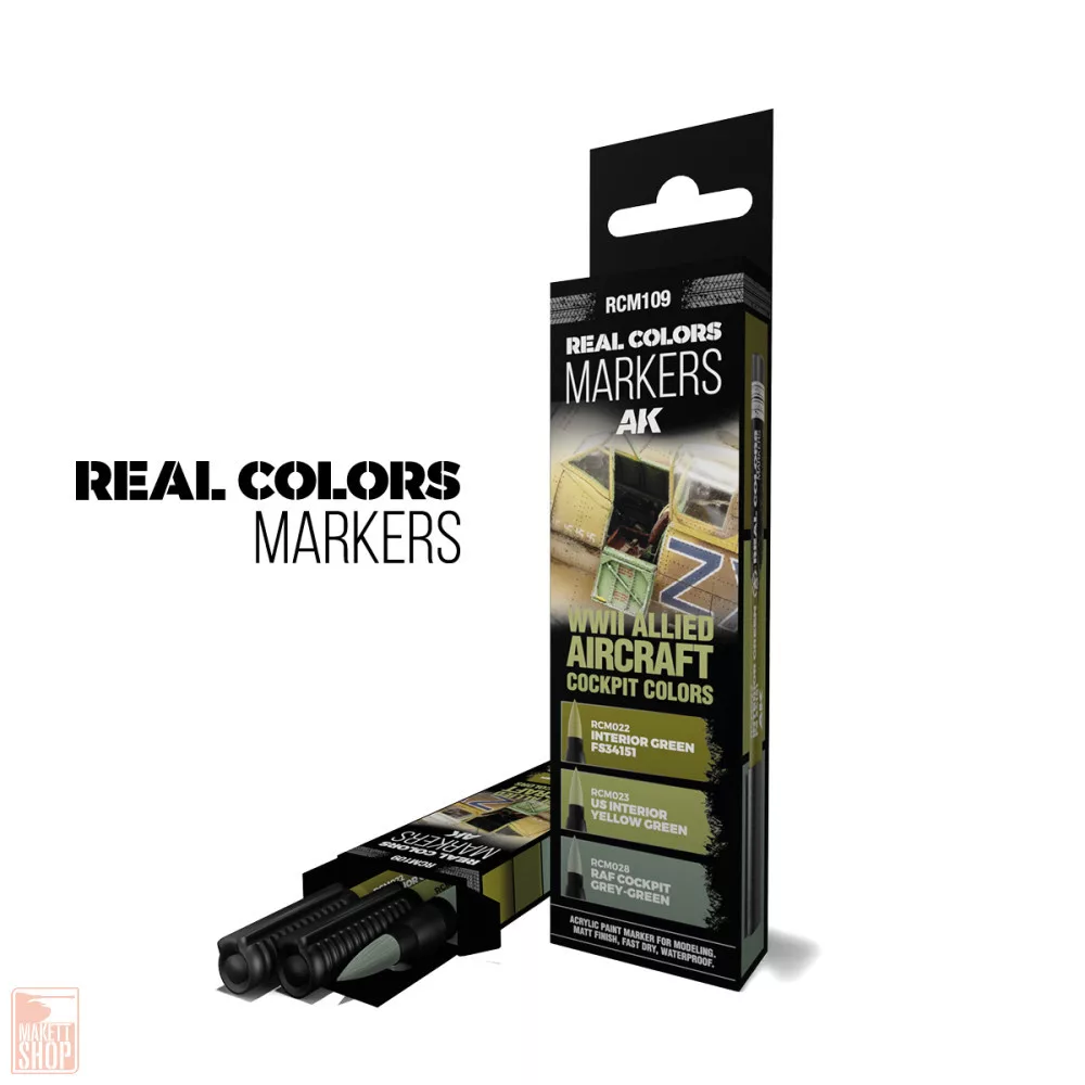 AK-Interactive RCM109 Wwii Allied Aircraft Cockpit Colors - Set 3 Real Colors Markers