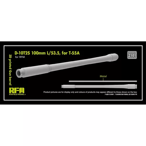 Ryefield model 2101 1:35 3D printed Gun barrel D-10T2S 100mm L/53.5  for T-55A, for RFM