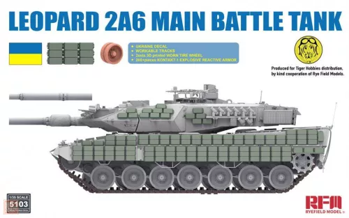 Ryefield model RM5103 1:35 Leopard 2A6 Main Battle Tank with Ukraine decal/ Kontakt-1ERA/workable tracks