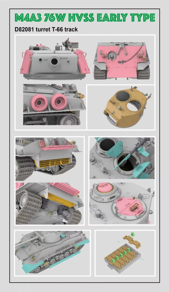 Ryefield model 1:35 M4A3 76W HVSS Early type D82081 turret T-66 track